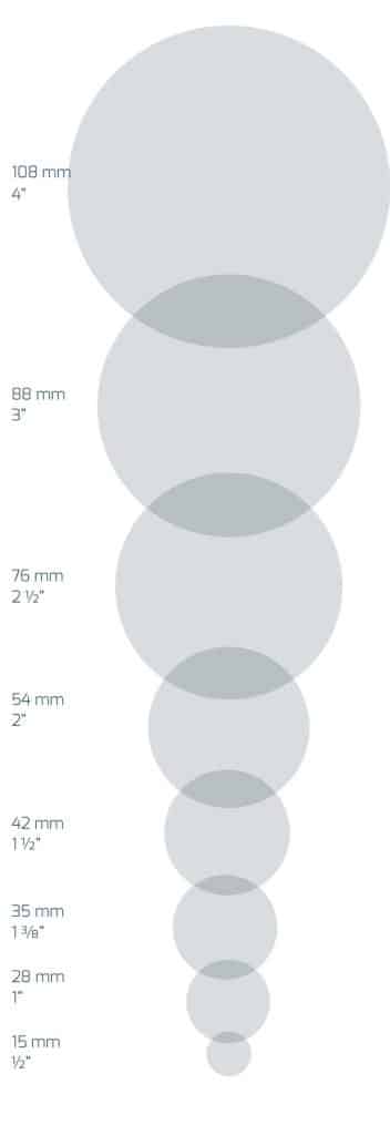 D76 (2 ¾”), D89 (3 ½”), D108 (4”)